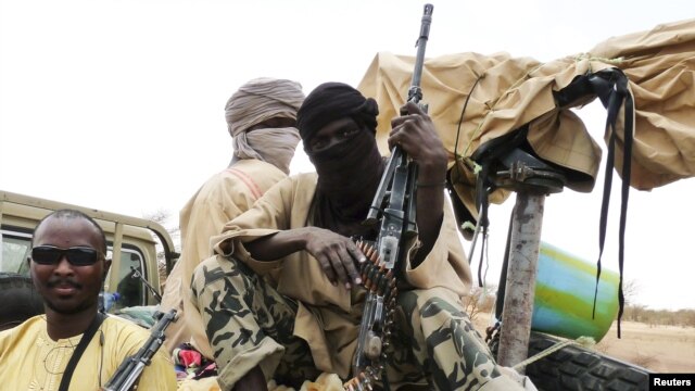Wanamgambo wa kundi la Ansar Dine wakiwa kwenye gari huko Gao kaskazini Mashariki mwa Mali.Rais huyo amesema kuwa maazimio ya baraza la usalama la umoja wa mataifa, ambayo mwezi Desemba yametoa kibali kwa jeshi la Afrika kuingilia kati mzozo wa Mali, yana maana kuwa Ufaransa inafanya hivyo kwa mujibu wa sheria za kimataifa.