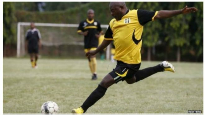 Mchekeshaji huyo anayefahamika kama Kigingi alifanya utani mwaka uliopita, ulioonyesha bwana Nkurunziza akikataa kuondoka uwanjani licha ya kuonyesha kadi mbili za manjano.