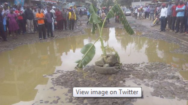 Wahudumu wa magari ya usafiri nchi Kenya, yanayofahamika kama matatu wamefanya maandamano kulalamikia hali mbaya ya barabara kwenye mitaa ya mji mkuu Nairobi.Kituo kimoja cha redio kimetuma picha ya waandamanaji wakipanda mgomba wa ndizi barabarani kwenye mtaa wa Kayole, kama njia ya kusema kuwa barabara iyo inaweza kuwa bora kwa kilimo kuliko iwe barabara ya magari.