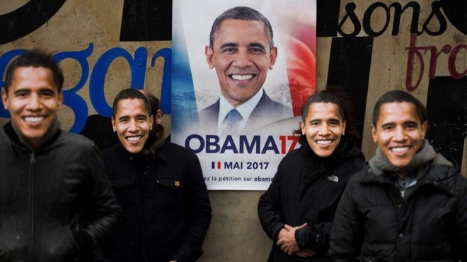 Mabango yaliyo na picha ya Obama yamewekwa mjini Paris.Ombi la mtandao la kumtaka Barrack Obama kuwania urais katika uchaguzi mkuu nchini Ufaransa limewavutia takriban wafuasi 42,000.